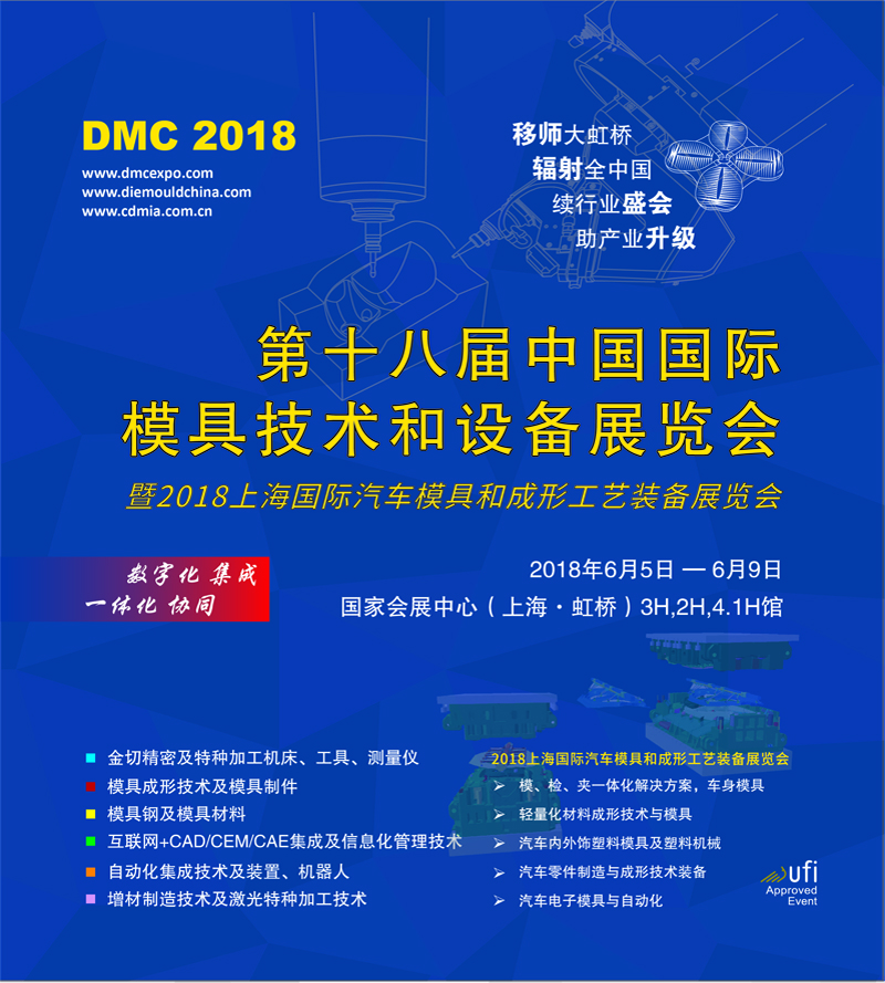 2018 第十八屆中國國際模具技術和設備展覽會 (DMC) tagged 上海國家會展中心 活动细节日期: 2018年6月5 – 9日地点: 上海國家會展中心寶力誠邀您前來參觀日期: 2018年6月5日 至 6月9日地點:上海國家會展中心