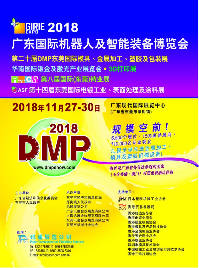 2018东莞国际机械及原料展 (DMP) 标签: 廣東現代國際展覽中心 活动细节日期: 2018年11月27 – 30日地点: 廣東現代國際展覽中心宝力诚邀您前来参观日期: 2018年11月27日 至 11月30日地点: 广东现代国际展览中心